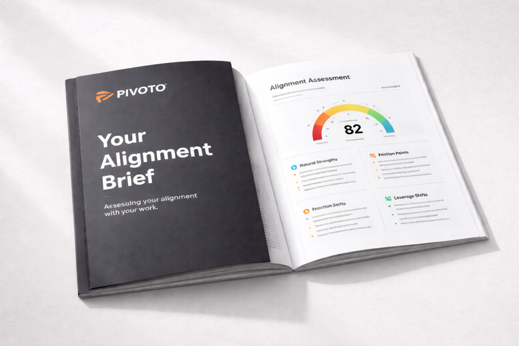 Behind the scenes, Pivoto analyzes where your current work supports your natural strengths — and where it quietly clashes with them.